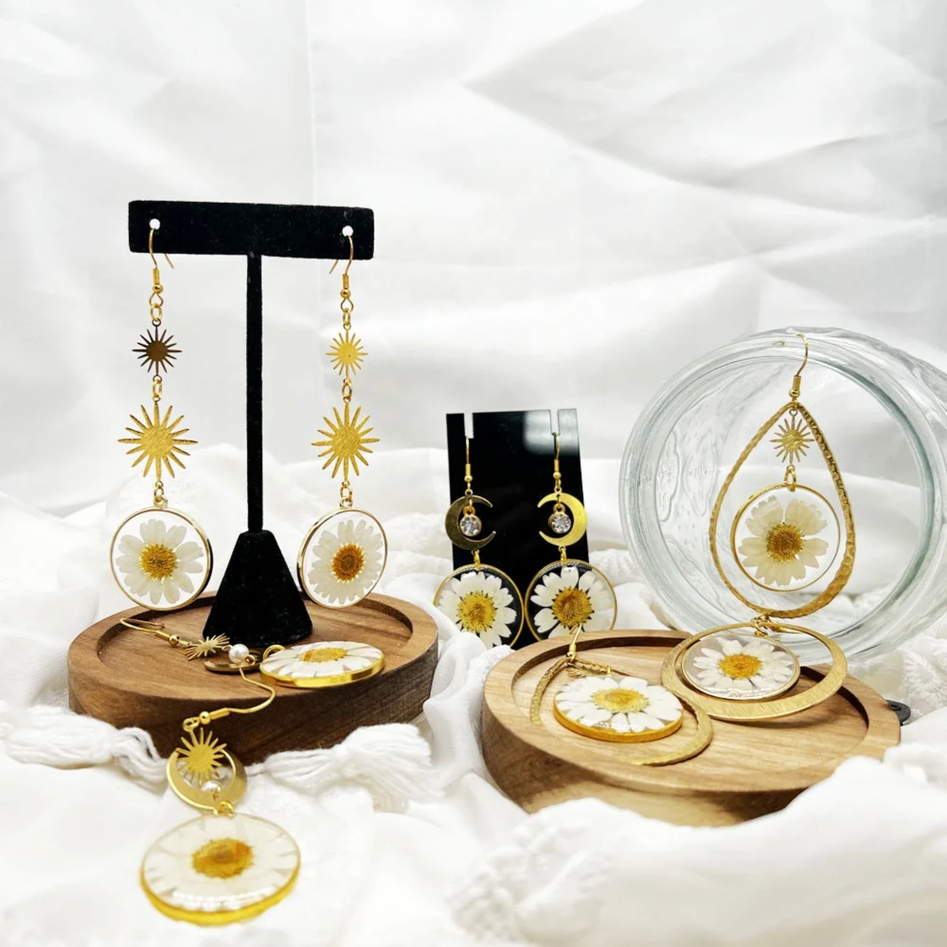 Note on Uniqueness: Since we use whole, natural daisies, the size and arrangement of the petals within the resin may vary slightly from earring to earring. This means your pair is genuinely unique—just like the flower itself!