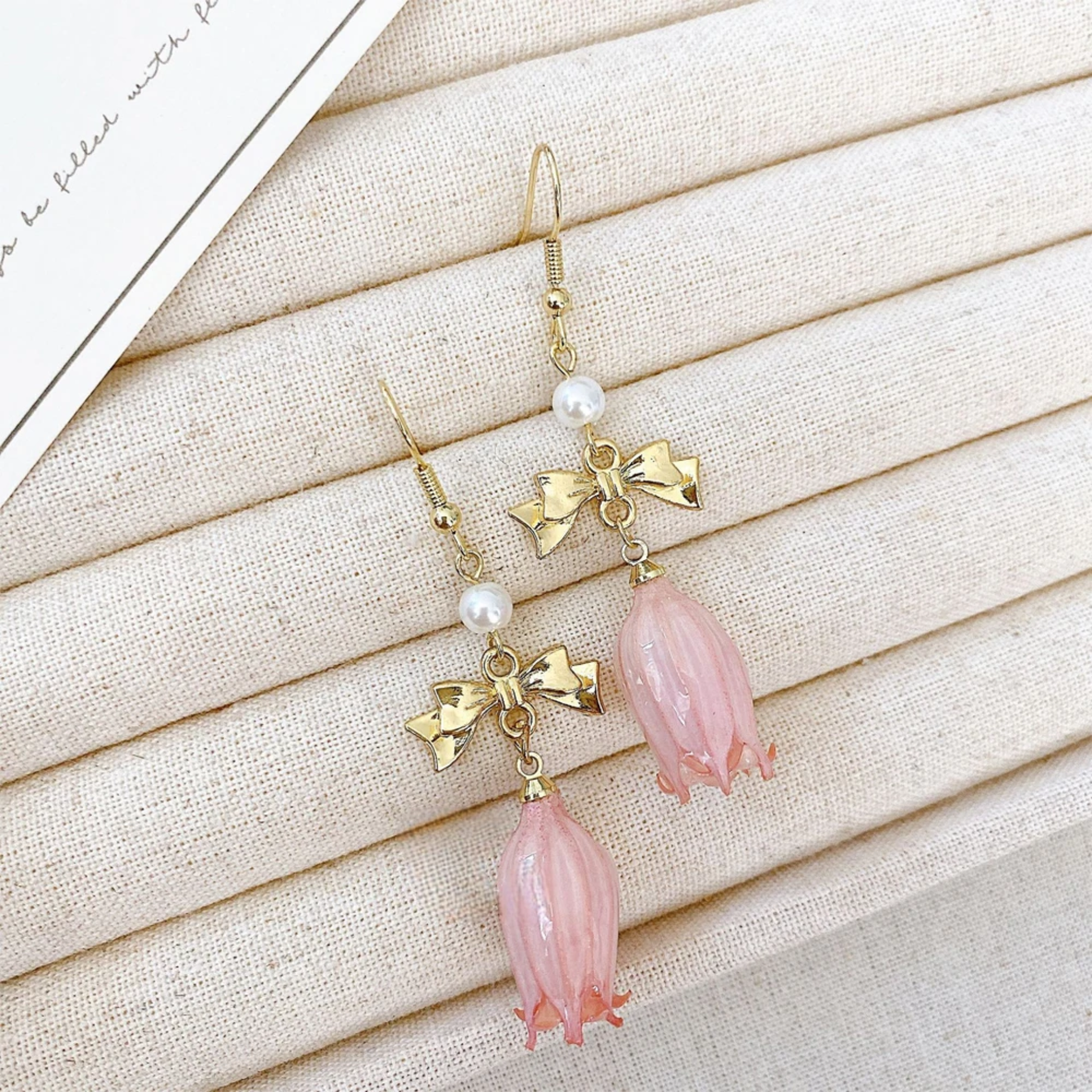 🔔 Rare Pink Lily of the Valley Resin Earrings